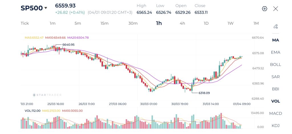 Chỉ số S&P 500 hiện đang giao dịch quanh mức 6.560 và đang cho thấy sự phục hồi tăng giá mạnh mẽ trên biểu đồ 1 giờ (1H). Thị trường đã chuyển dịch từ giai đoạn giảm giá sang một xu hướng tăng rõ rệt, với việc giá phá vỡ lên trên các đường trung bình động quan trọng và hình thành các đáy cao dần.